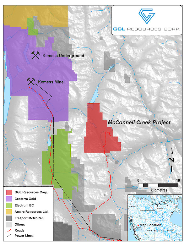 - 22 km southeast of the past producing Kemess Copper-Gold Mine